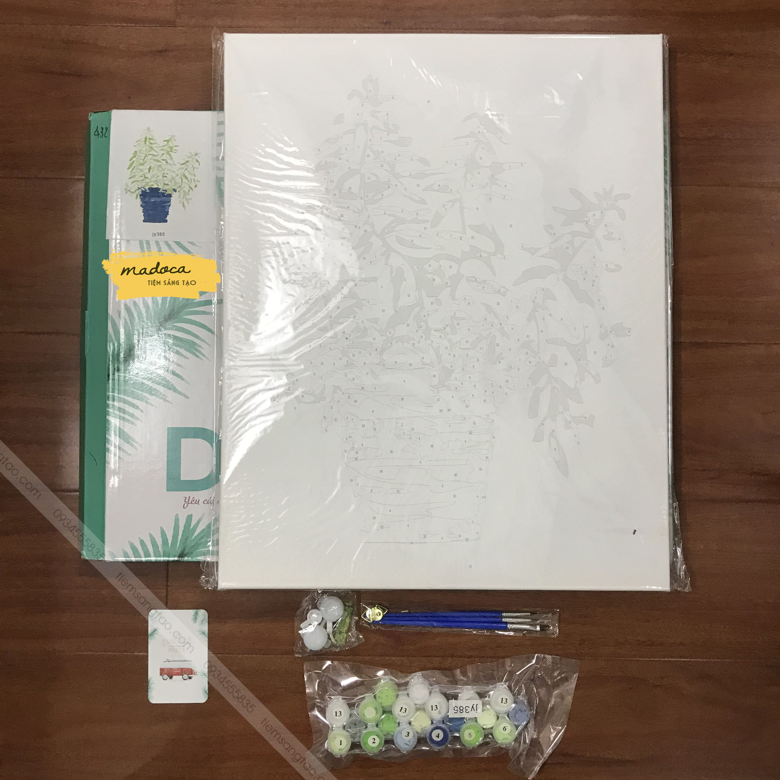 -Bộ màu vẽ có đánh số: Các lọ màu vẽ được đánh số tương ứng với số được đánh trên tranh, có chất lượng cao cấp và màu sắc rực rỡ, độ bền màu cao, an toàn cho sức khỏe người dùng.