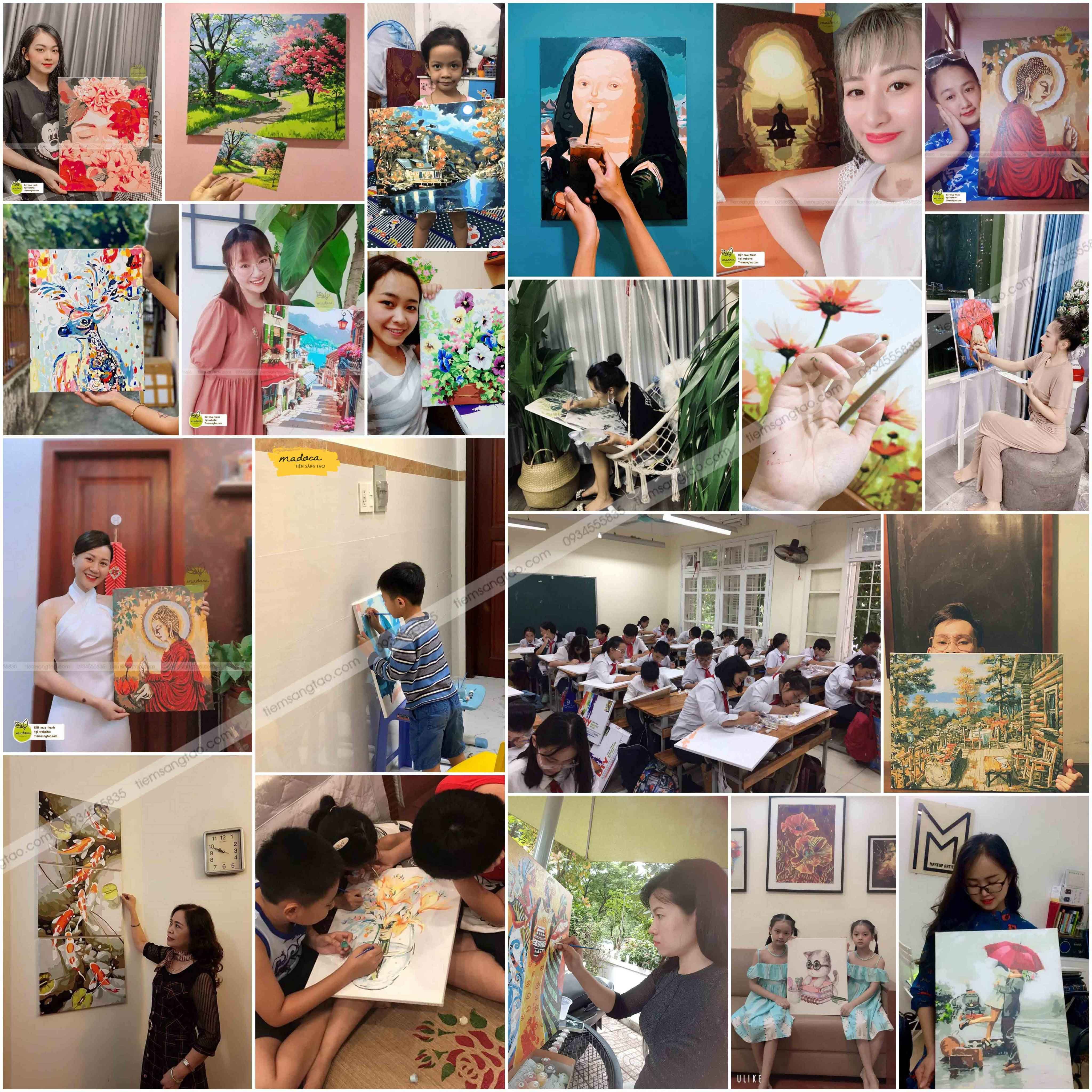 -Sau đó bạn chỉ cần lấy lần lượt các màu để tô số tương ứng trên tranh (VD: Lọ màu đánh số 1 thì tô lên ô số 1 trên tranh) cứ làm như vậy cho tới khi hết mã màu thì bạn sẽ có được một bức tranh hoàn chỉnh đó.