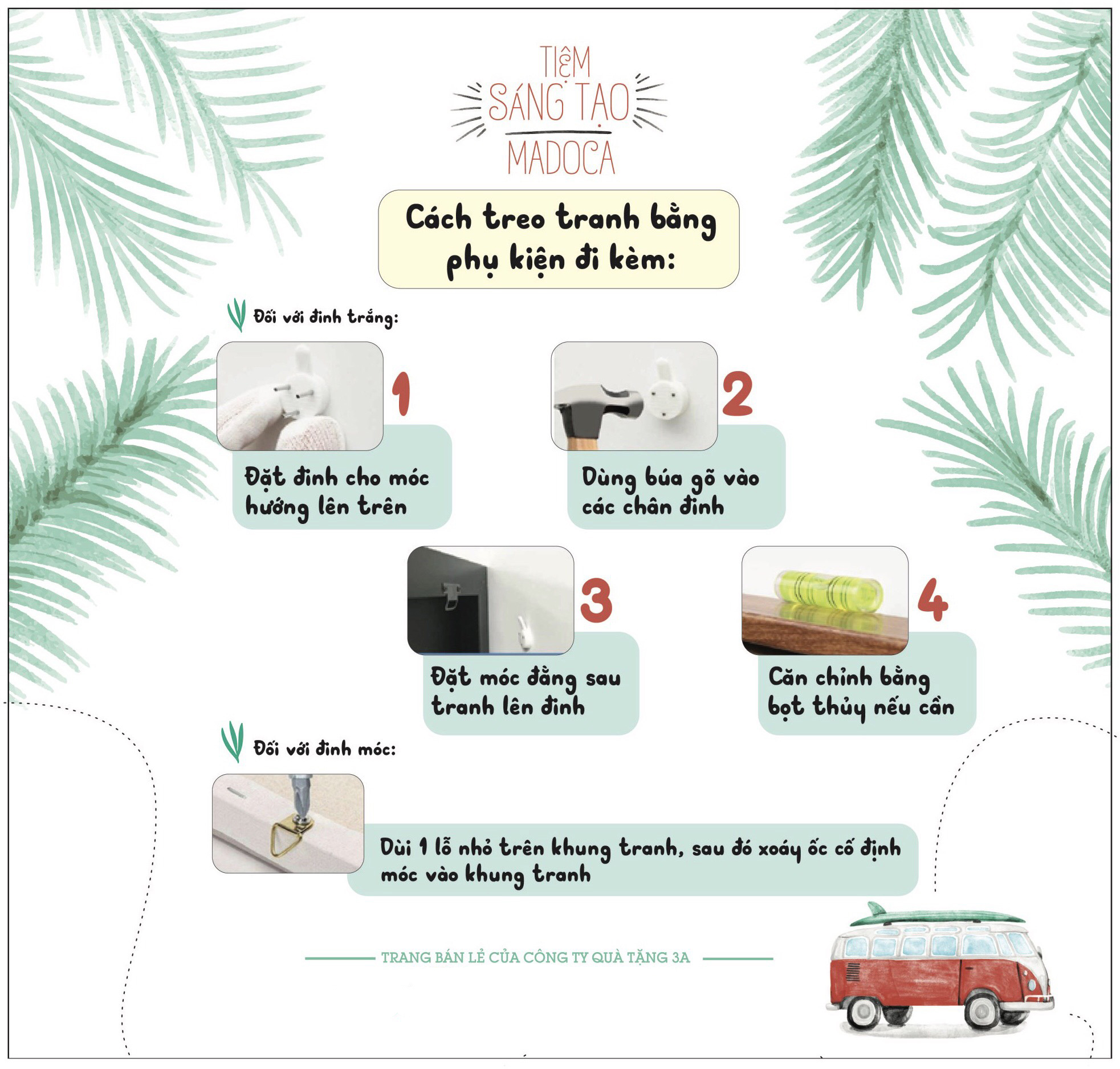 -Móc và vít treo tranh khi hoàn thành sản phẩm