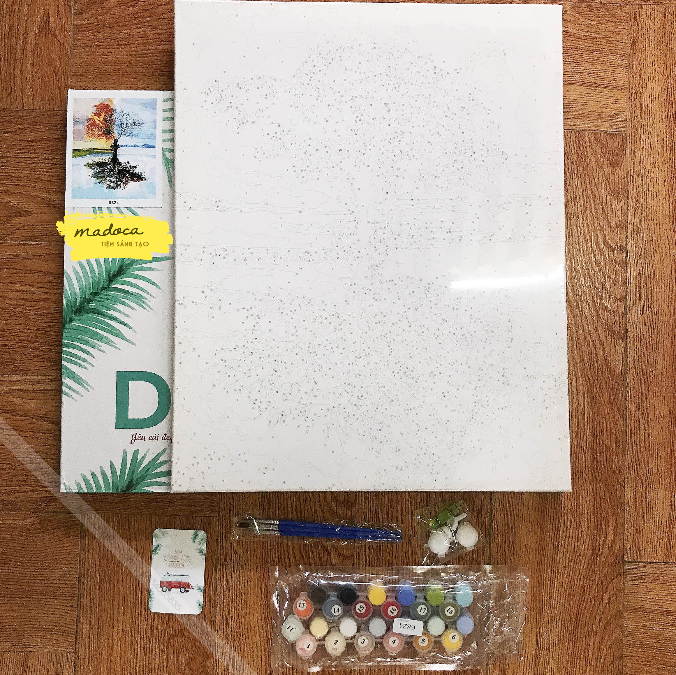-Bộ màu vẽ có đánh số: Các lọ màu vẽ được đánh số tương ứng với số được đánh trên tranh, có chất lượng cao cấp và màu sắc rực rỡ, độ bền màu cao, an toàn cho sức khỏe người dùng.
