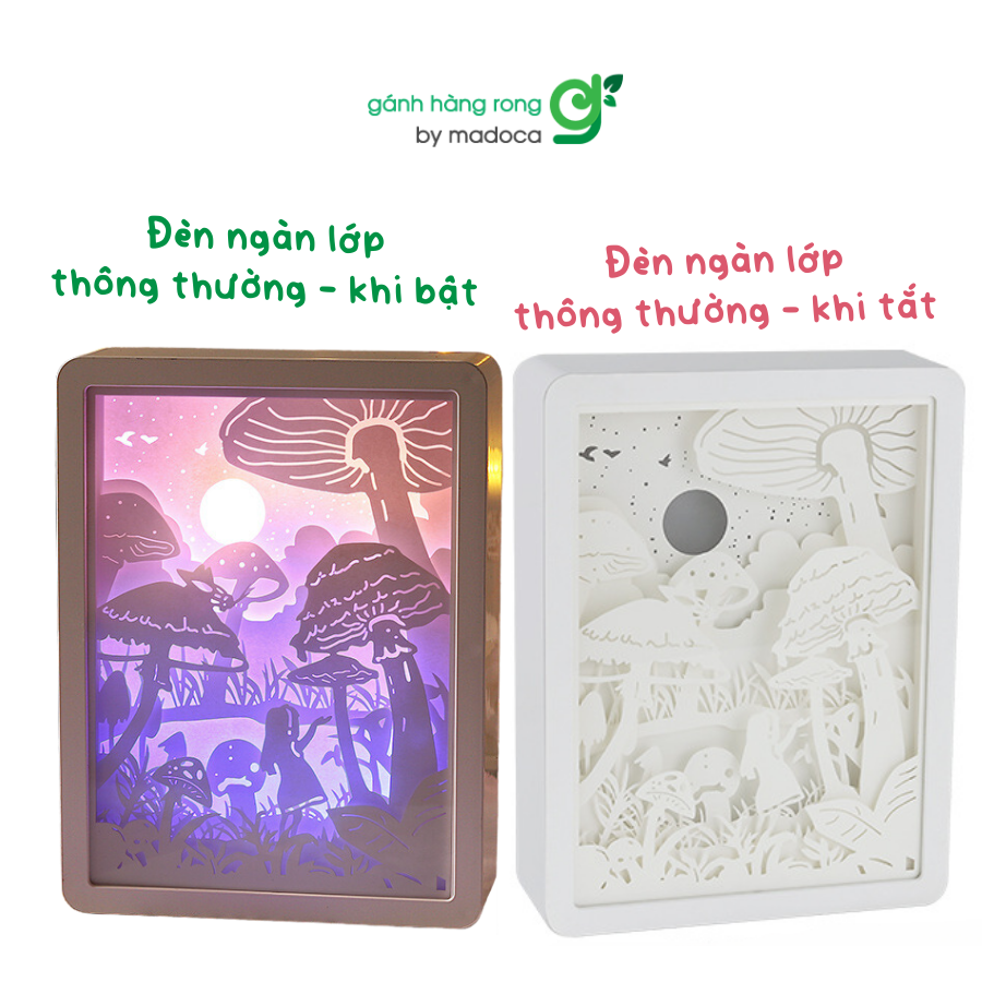 Đèn Ngàn Lớp chính là một sự kết hợp hoàn hảo giữa nghệ thuật ánh sáng và nghệ thuật khắc giấy. Bên trong đèn sẽ được tạo nên bởi nhiều lớp giấy, mỗi lớp giấy sẽ khắc hoạ một phần khung cảnh và tất cả những lớp này khi ghép lại với nhau sẽ tạo thành một bức tranh 3D cực kỳ lung linh và huyền ảo. Mỗi chiếc đèn sẽ là một bức tranh khác nhau! Bạn sẽ tự tay lắp những chiếc đèn này để decor hoặc tặng cho những người thân yêu của mình!