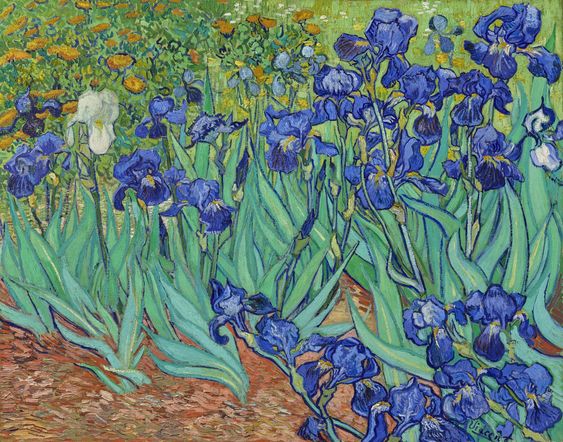 Irises là một trong những tác phẩm cuối cùng của Van Gogh. Bức tranh này được vẽ tại bệnh viện Saint-Paul-de-Mausole, nơi ông đang điều trị cho căn bệnh tâm thần. Irises là một bức tranh có màu sắc tươi sáng, với những bông hoa diên vĩ màu tím thẫm, trông giống như những chùm hoa bừng sáng trong bóng tối.