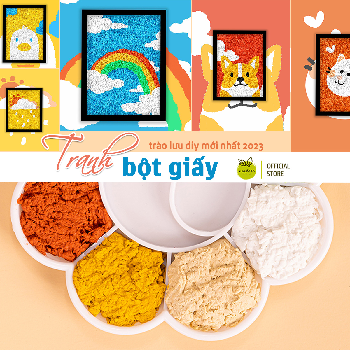 Madoca hy vọng qua bài viết này đã phần nào giúp bạn hiểu về trào lưu làm tranh bột giấy đang hot hiện nay! Bạn có thể tham khảo bộ sản phẩm làm tranh bột giấy của Madoca trên các nền tảng mạng xã hội, sàn thương mại điện tử hoặc liên hệ để được tư vấn thêm nha. Chúc mọi người sớm hoàn thiện một bức tranh bột giấy của riêng mình!